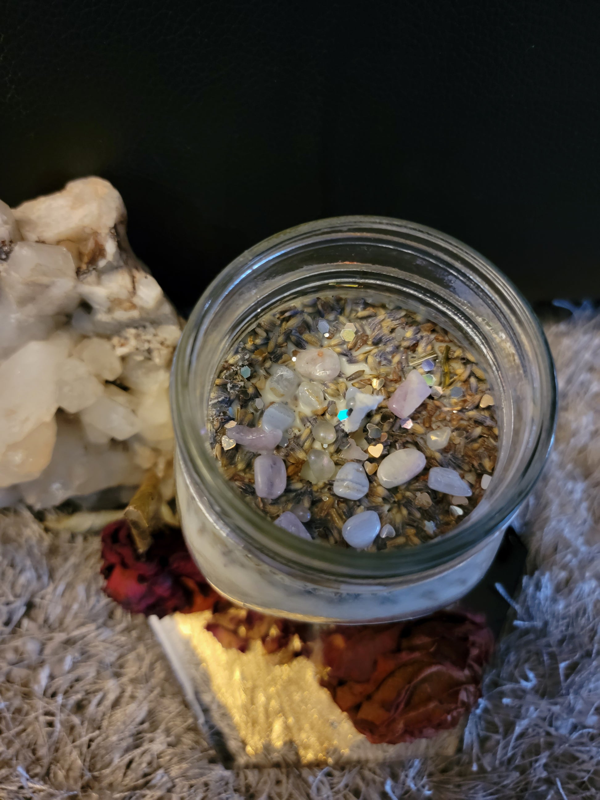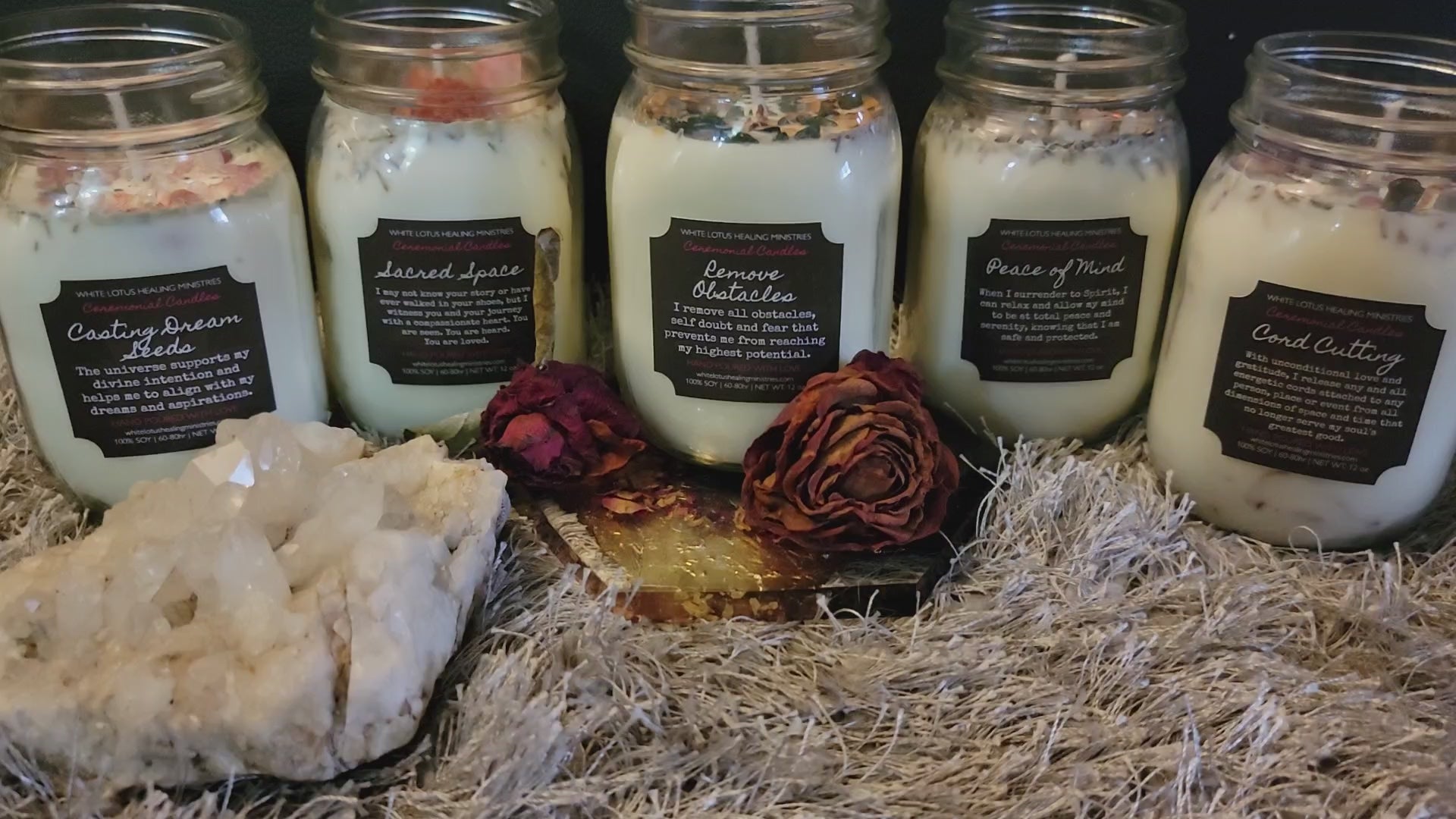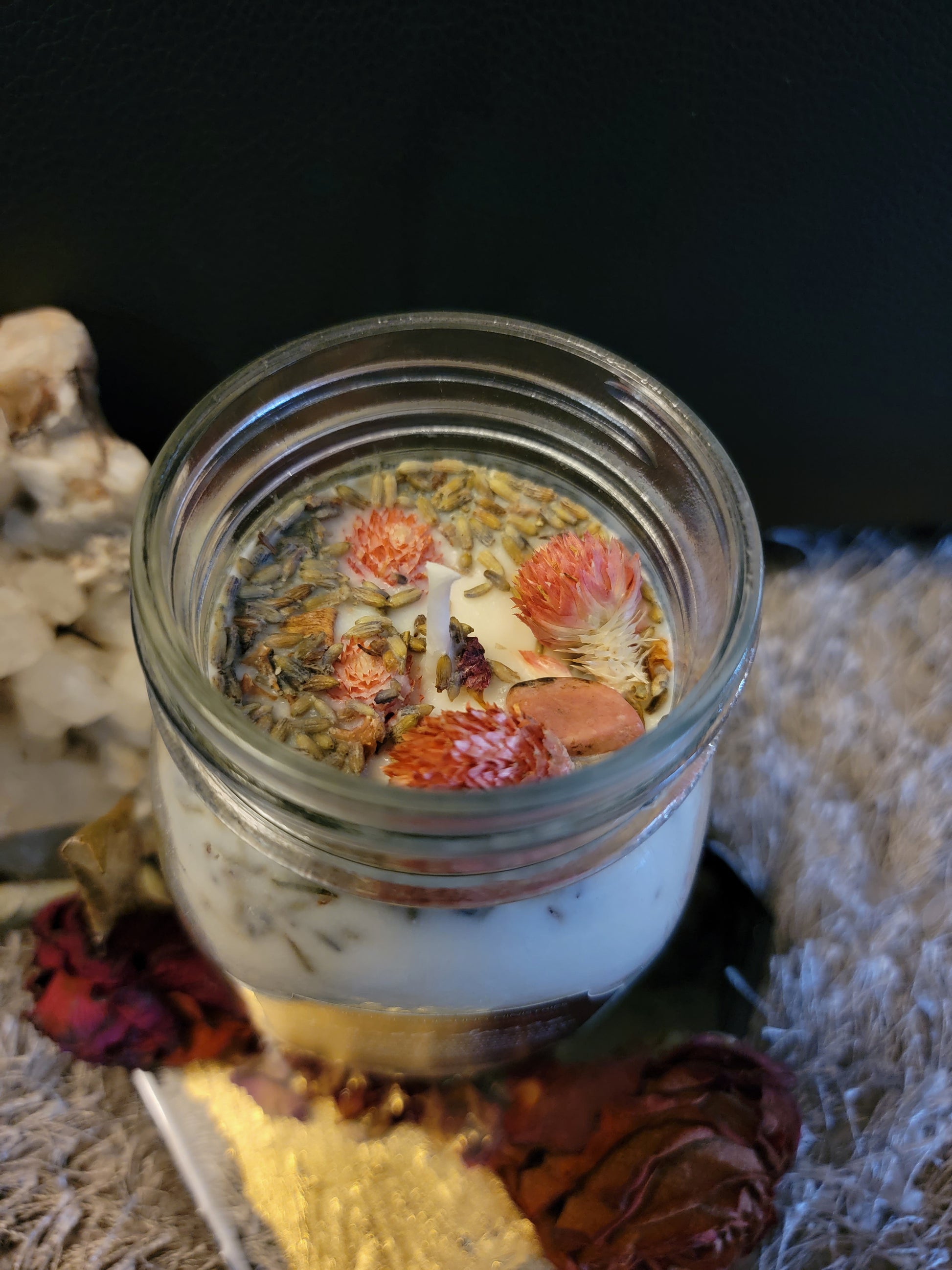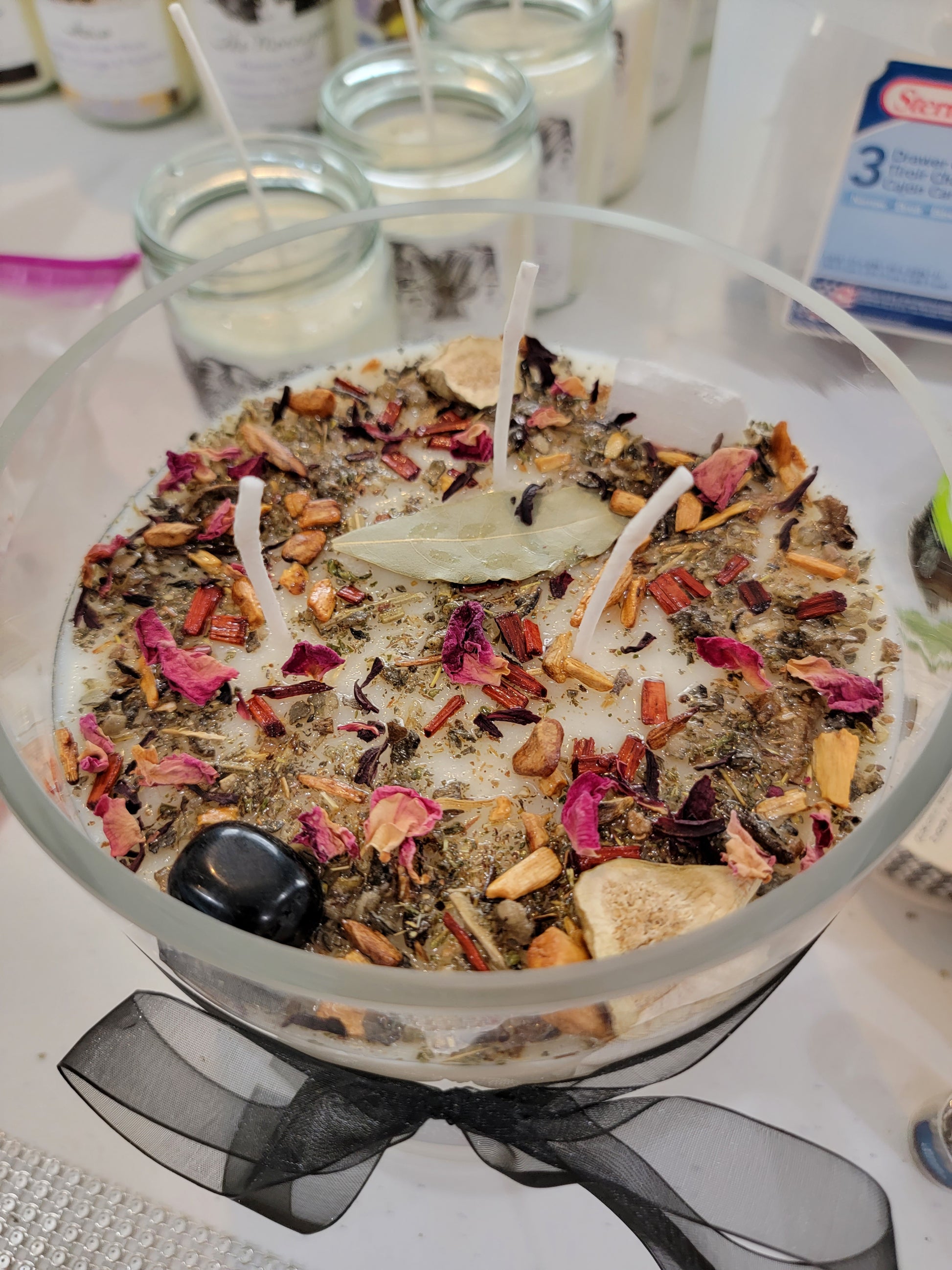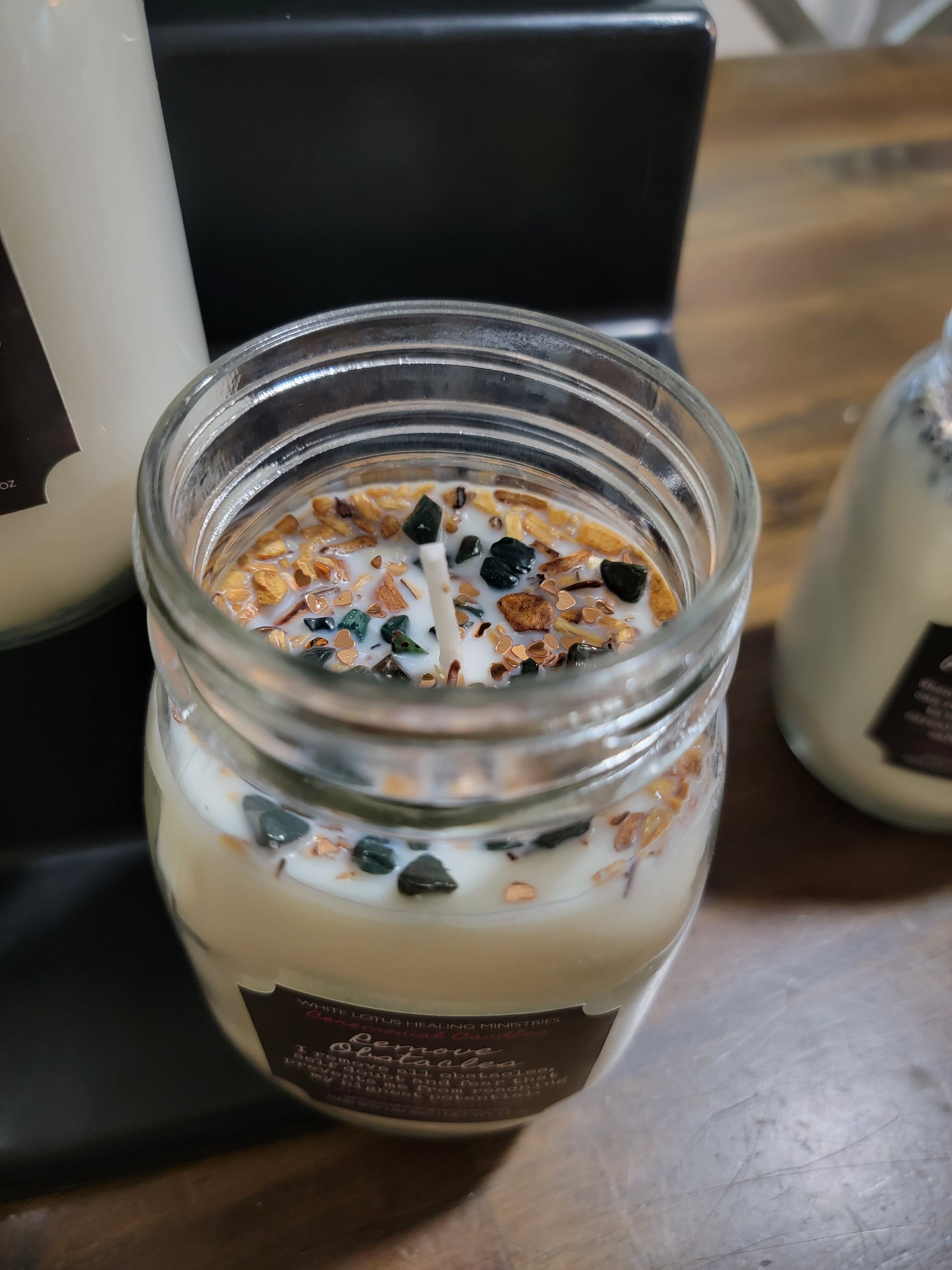 Our Ceremonial candle collection amplifies your personal intentions. Each candle has been hand-crafted with select gemstones to match the essence of the energy. Candles may contain real gemstones, gold flake, herbs, and/or flowers. Lightly scented with our unique blend of essential oils.