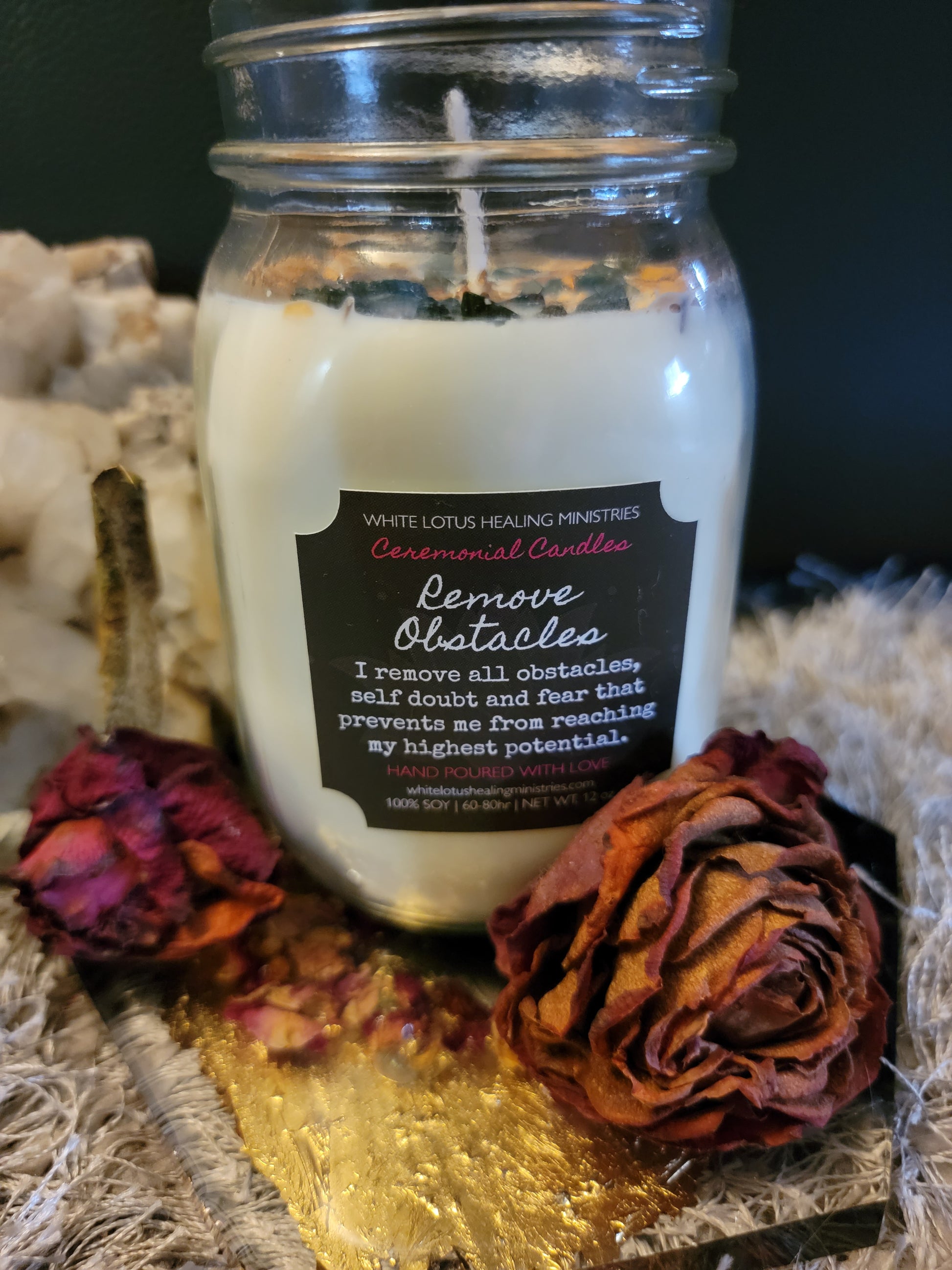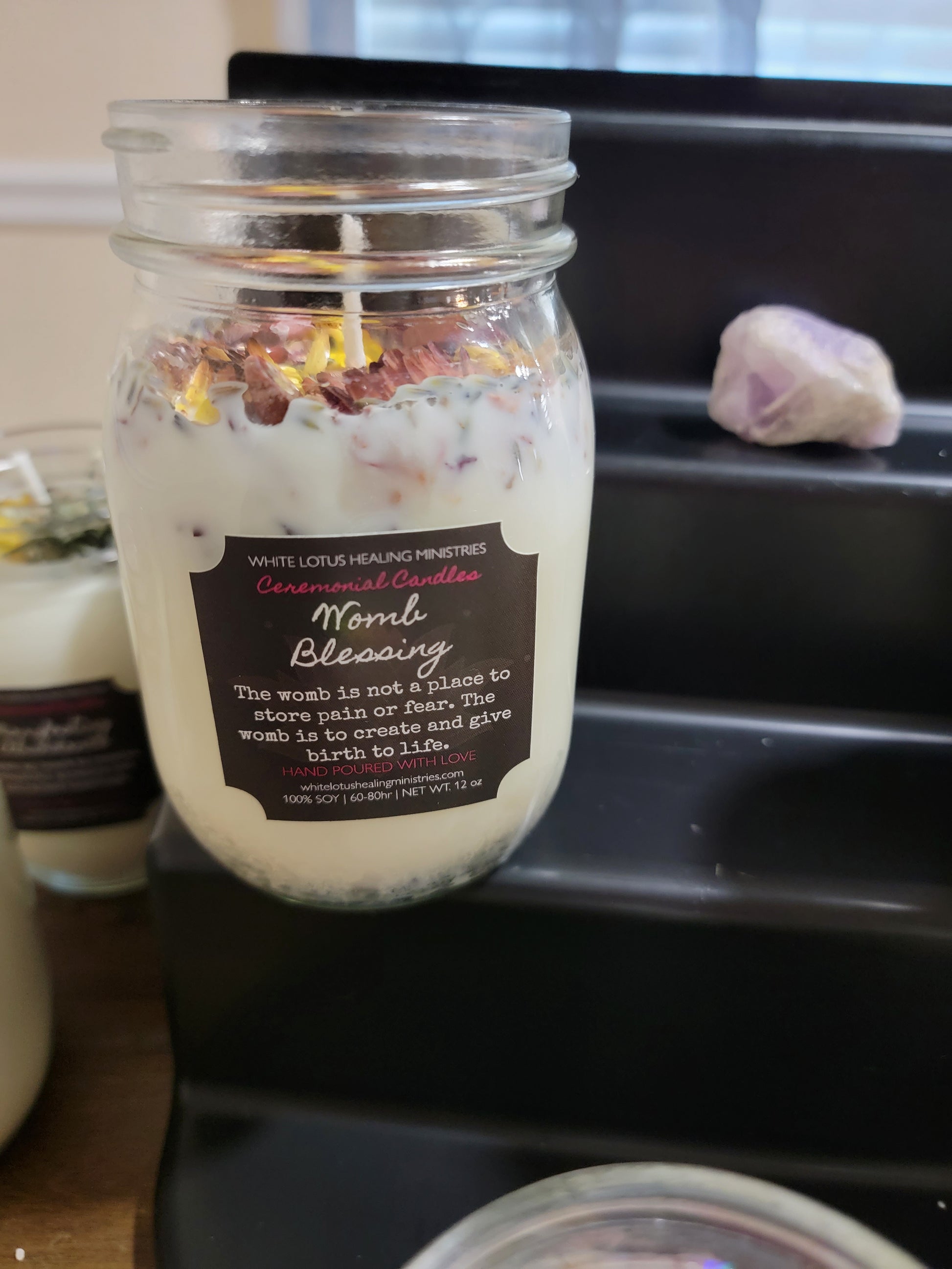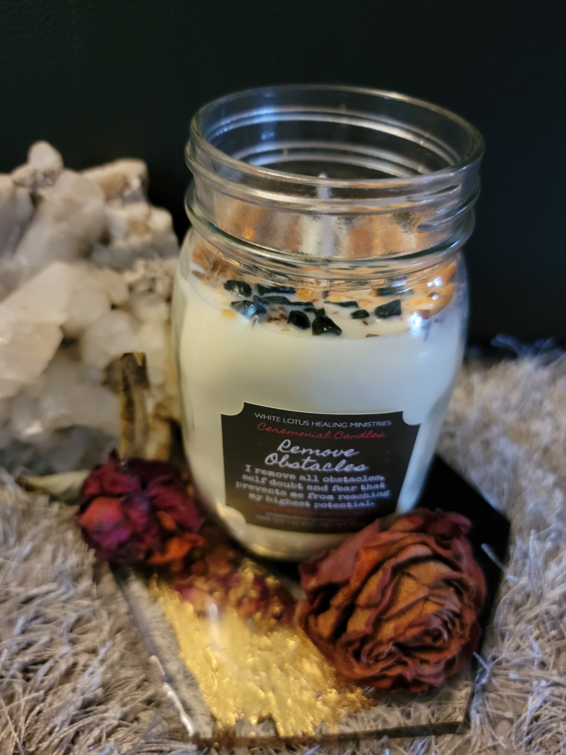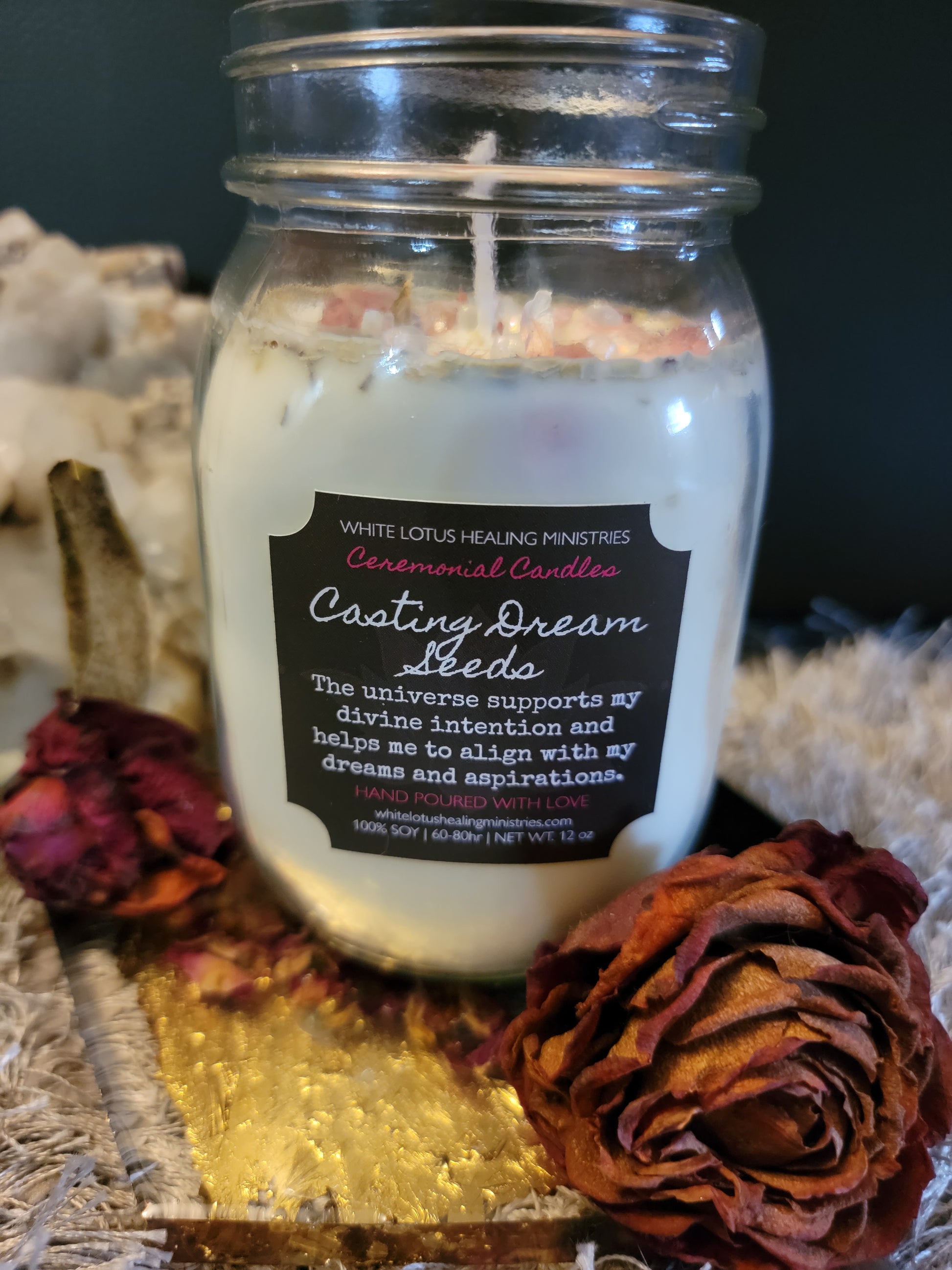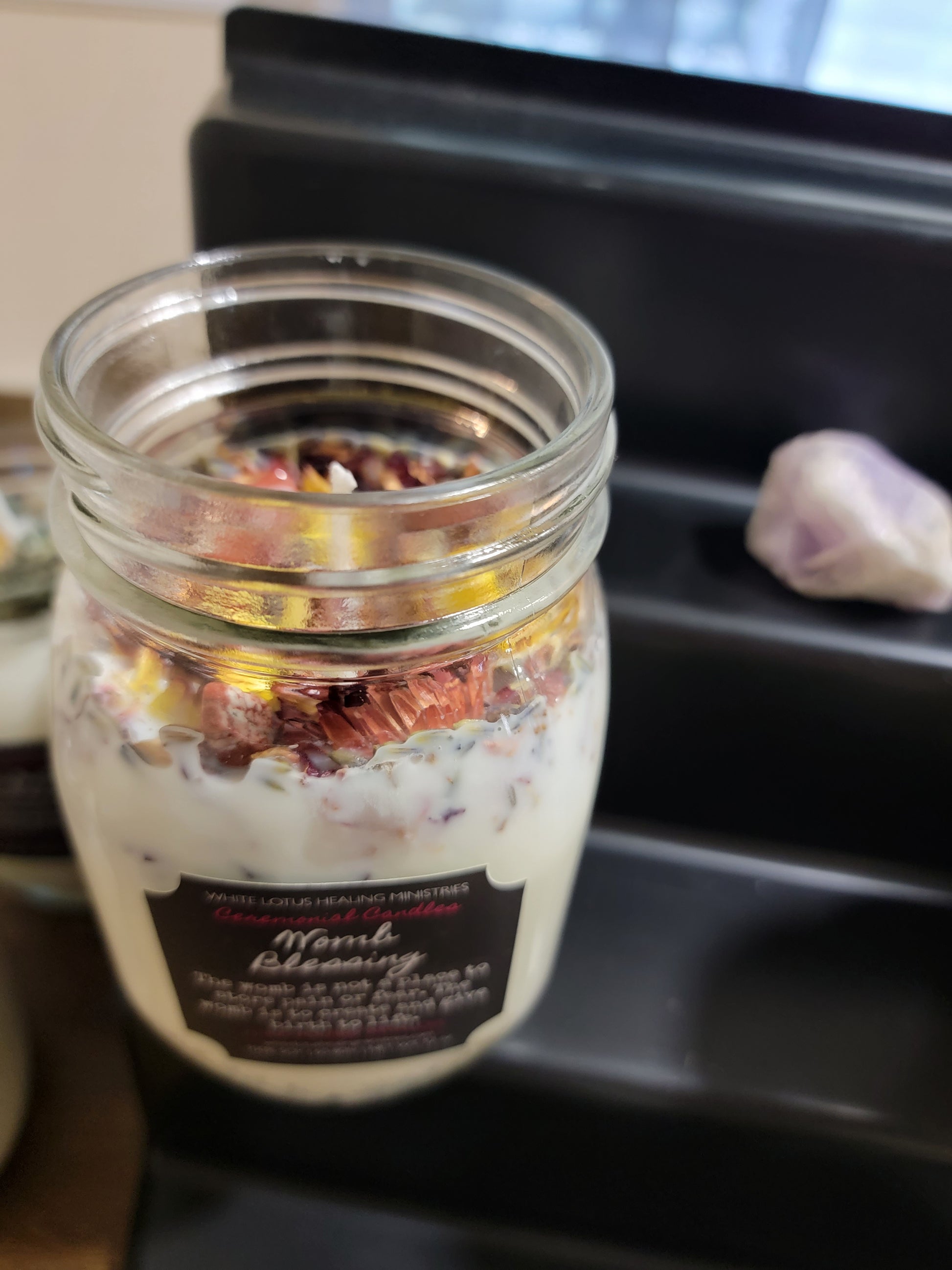 Our Ceremonial candle collection amplifies your personal intentions. Each candle has been hand-crafted with select gemstones to match the essence of the energy. Candles may contain real gemstones, gold flake, herbs, and/or flowers. Lightly scented with our unique blend of essential oils.