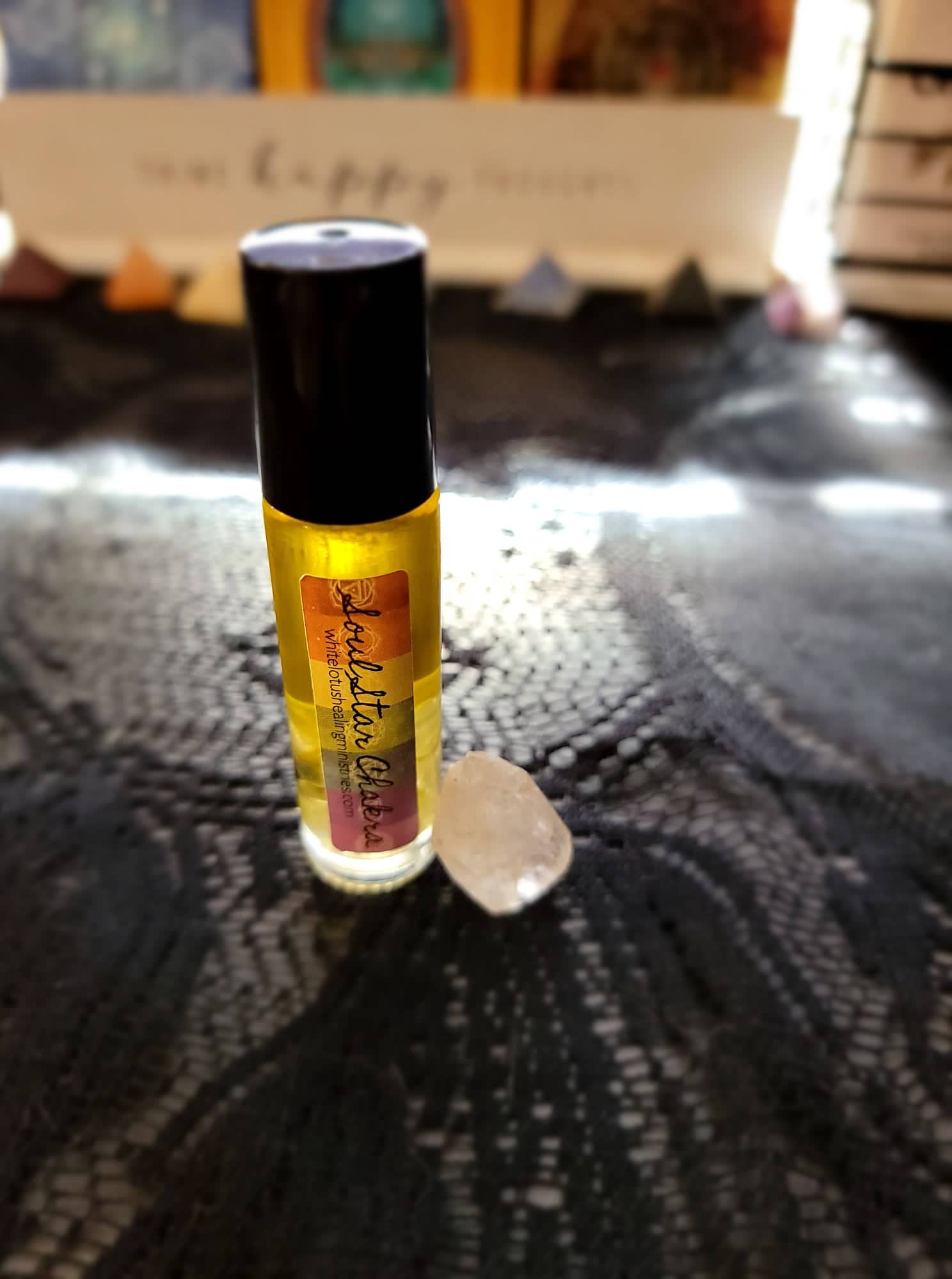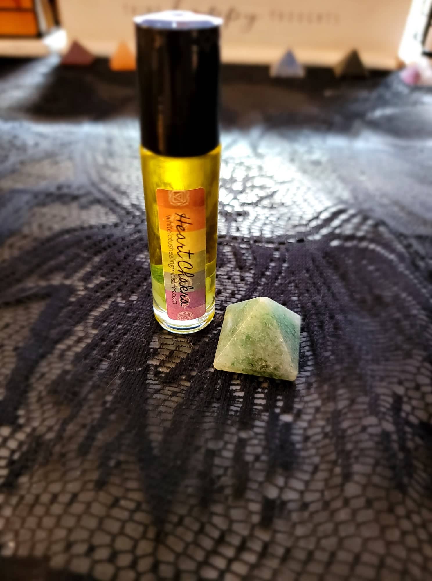 Chakra Oil blends are carefully crafted with corresponding essential oils and gemstones to promote healing and balance within the energy centers of the body.