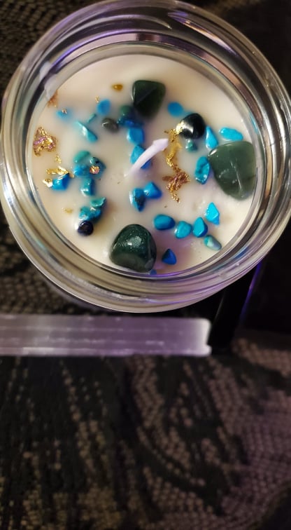 Our Goddess candles add beautiful divine feminine energy to any sacred space. Each candle has been hand-crafted with select gemstones to match the essence of the Goddess. Candles may contain real gemstones, gold flake, herbs, and/or flowers. Lightly scented with our unique Goddess blend of essential oils, which includes Rose, Sweet Orange, Frankincense, Grapefruit, and more.